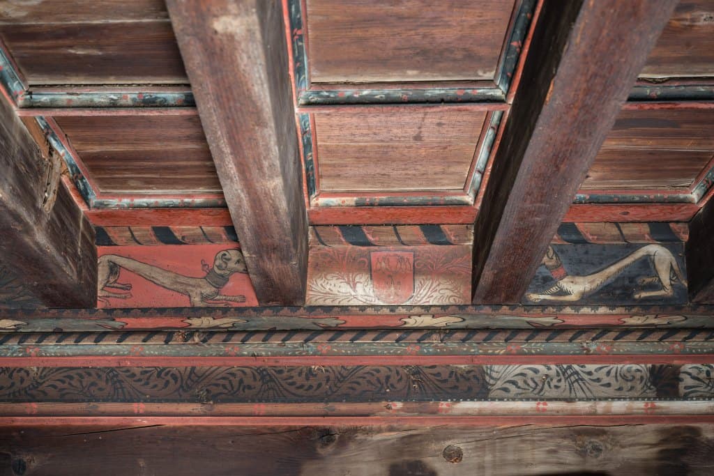 plafond peint à caissons du premier étage de l'ancien presbytère (salles sud-est)