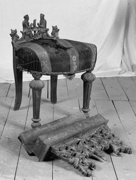 hêtre : taillé, chantourné, décor dans la masse, décor en relief ; textile