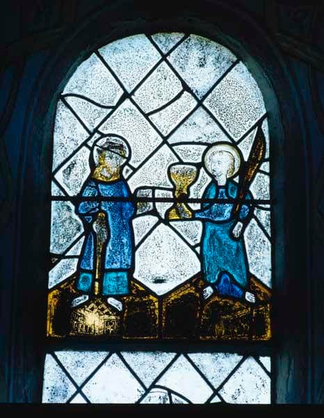 verrière figurée : Vierge à l'Enfant avec donateur, saint Jean l'évangéliste, saint Jacques le Majeur
