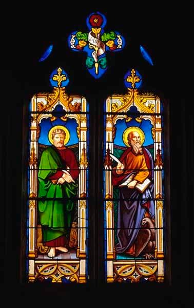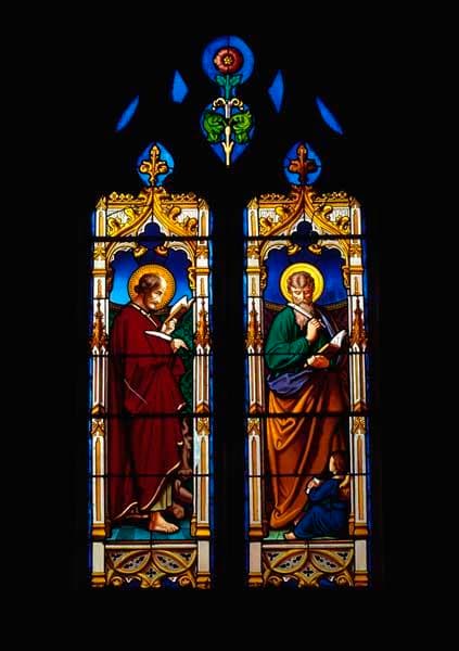 ensemble de 2 verrières à personnages : Saint Jean et saint Marc, Saint Matthieu et saint Luc