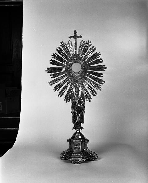 Le pied hexagonal, la tige et la gloire sont soudés entre eux. La lunette et la nuée sont en argent, les rayons sont en argent doré, la lunette comporte au revers une porte circulaire sur charnières.