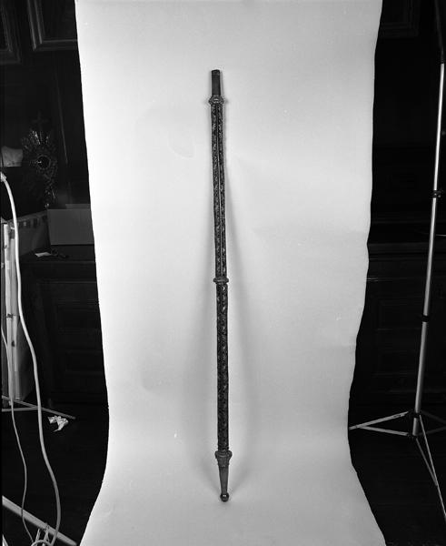 Hauteur de la croix:48;largeur des bras de la croix:29.7;épaisseur de la croix:1.8;hauteur de la hampe:157;diamètre de la hampe:4.