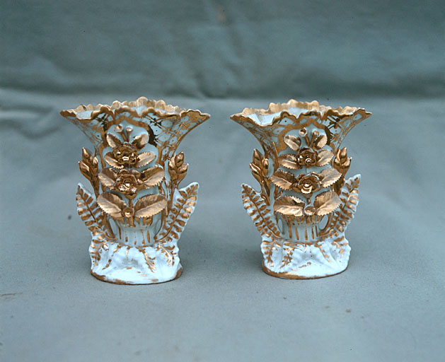 porcelaine dure : glaçure (blanche), doré (décor rapporté)