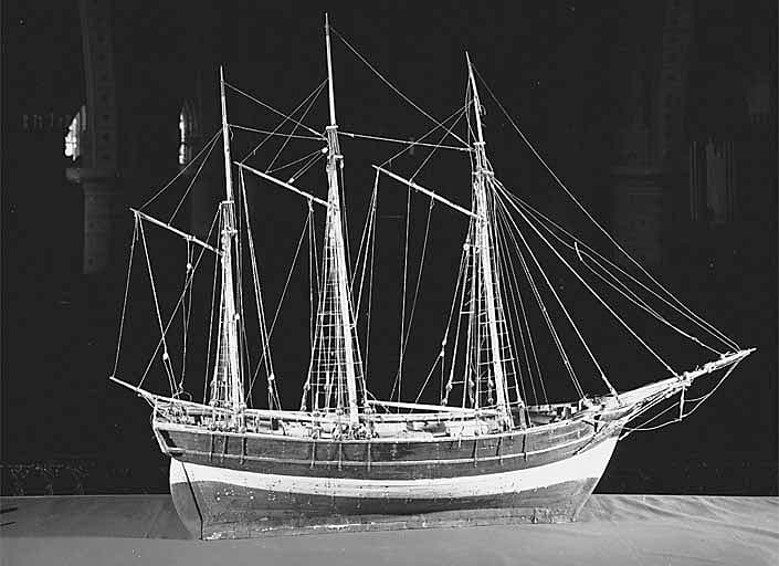 Maquette sur berceau pourvue d'un gréement sans voilure