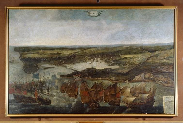 tableau : Vue panoramique du siège de La Rochelle en 1628