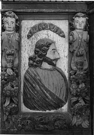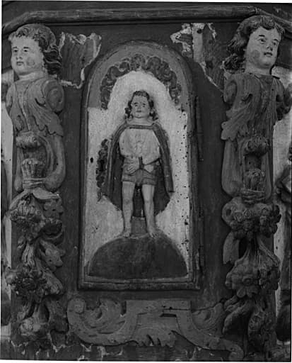 bois : peint (polychrome), décor en bas-relief, décor en demi-relief