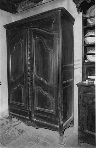 Panneaux à moulures chantournées. Traverse inférieure chantournée ornée au centre de volutes dans un cartouche en éventail. Faux dormant sculpté d'une chute de motifs stylisés.