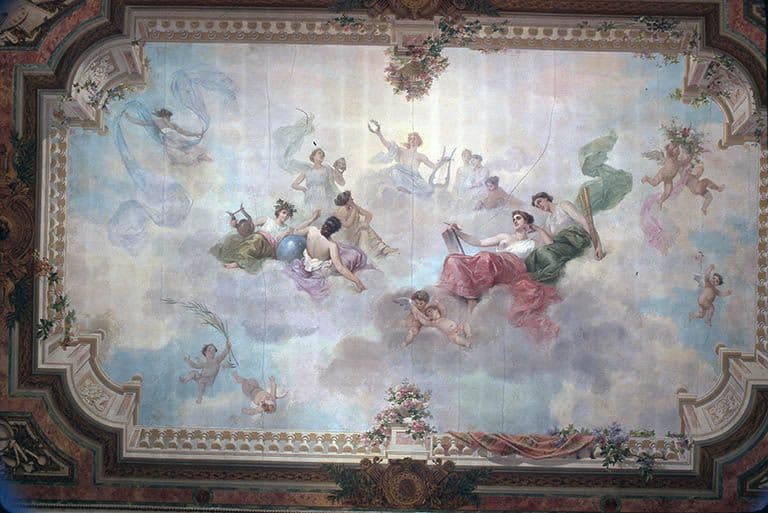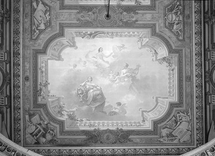 peintures monumentales : Apollon couronnant les arts scéniques ; allégories de la Sculpture, de la Musique et de la Peinture ; Allégories de l'Astronomie, de la Poésie et de la Littérature