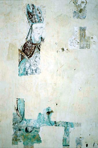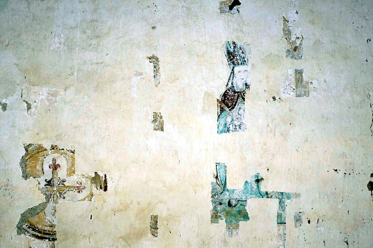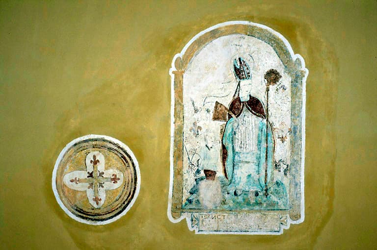 peinture monumentale : évêque (saint Eutrope ?) et croix de consécration
