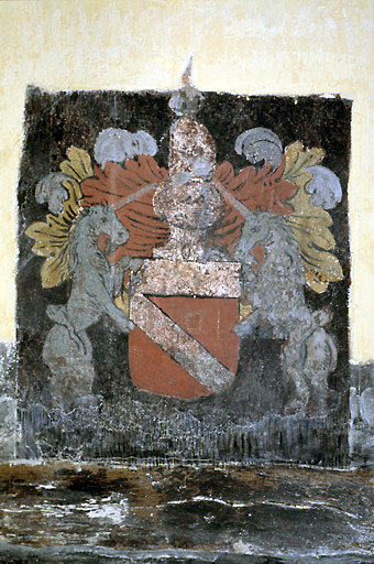 enduit (support) : peinture à la chaux (?), peinture à l'huile (?)