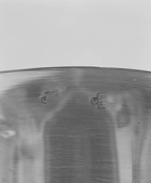 Poinçon de maître (incomplet) insculpé deux fois sur le bord de la coupe : écu aux armes de la ville de Dijon surmonté de la lettre C.