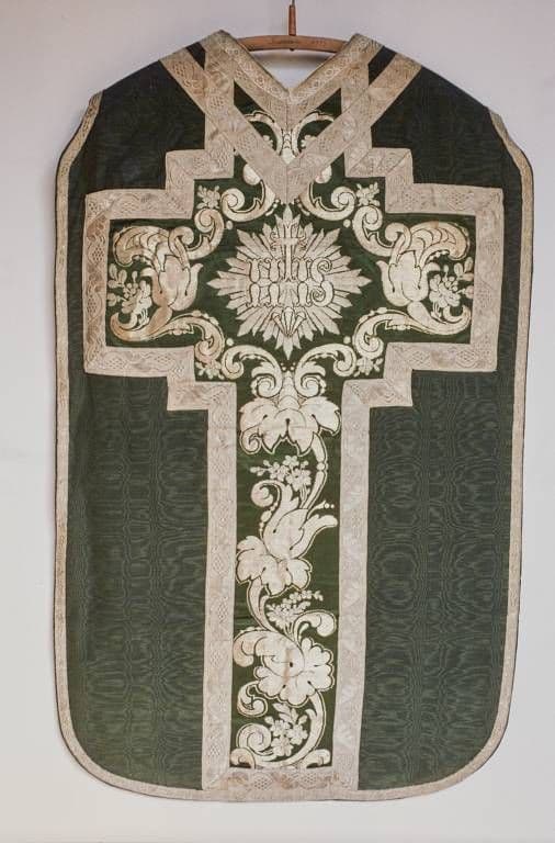ornement vert : chasuble, manipule et bourse de corporal