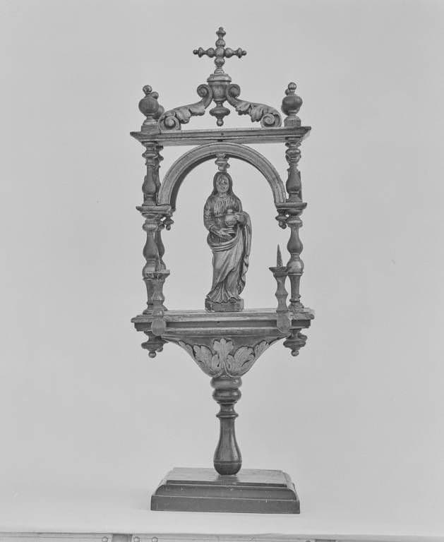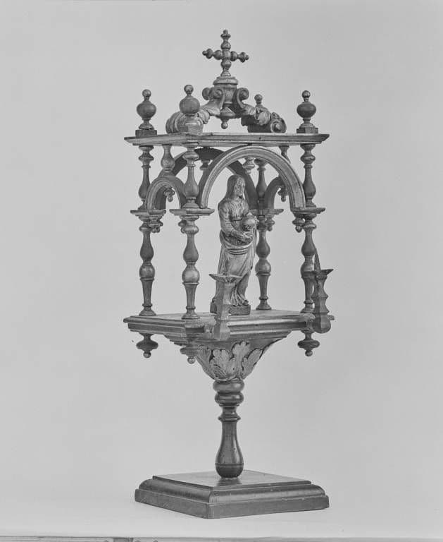 bois : tourné, décor en relief, doré, peint, polychrome
