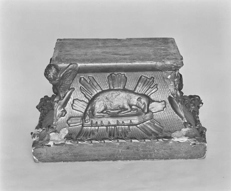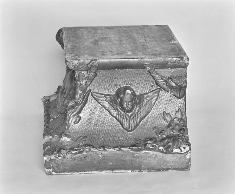 bois blanc (structure) : doré à la poudre, décor en relief, décor rapporté ; stuc (décor)