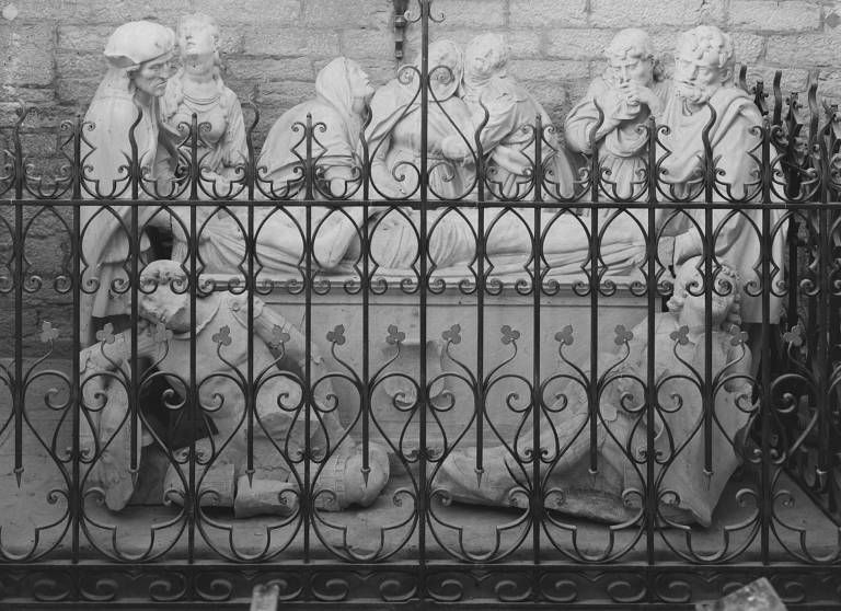 Mise au tombeau datée 1521, provenant de l'église Saint-Pierre détruite ; selon Courtépée, le commanditaire serait N. Boyeau, bourgeois de Pouilly. Placée d'abord dans la seconde travée du vaisseau nord, elle fut transférée en 1894 à son emplacement actuel. La grille en fer forgé a été installée en 1908, selon une recommandation faite par l'architecte Charles Suisse en 1895.