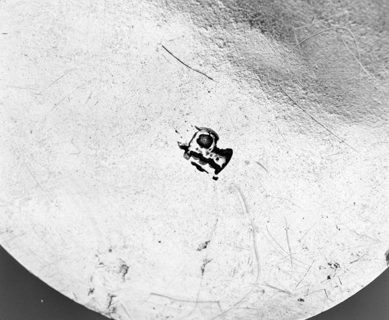 Poinçon sous le fond : charge des gros ouvrages, juridiction de la Monnaie de Dijon, 1781-1789 : lettre P fleuronnée et couronnée.