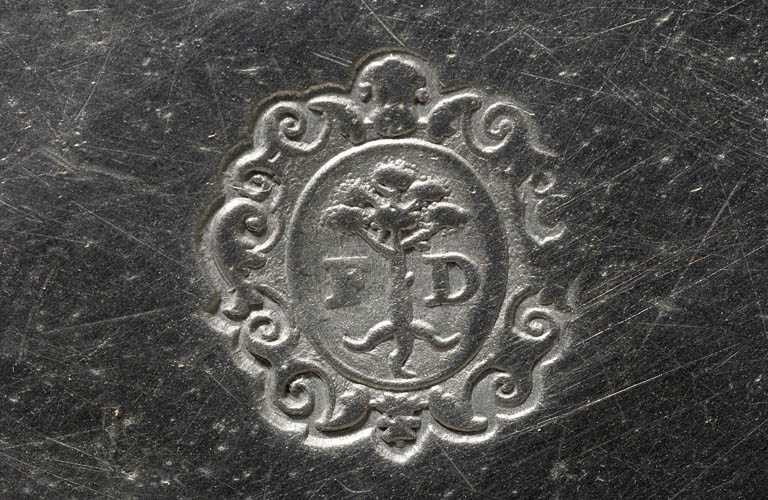 poinçon de potier d'étain : poinçon oval avec les initiales F D et un arbre
