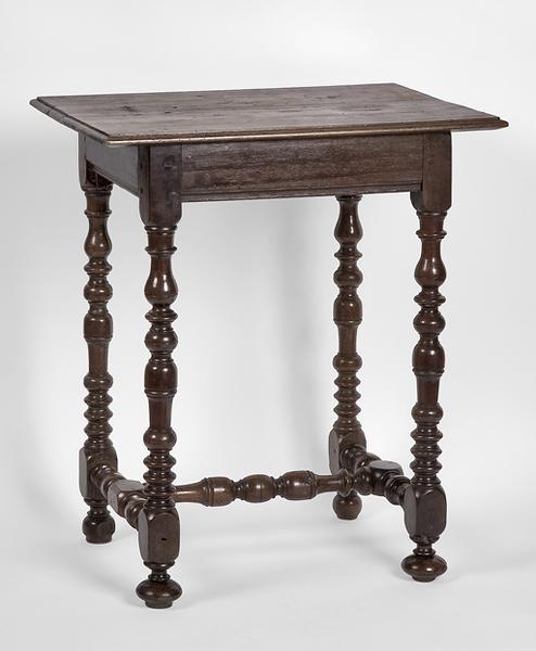 Entrejambe en H tourné ; pieds tournés ; assemblages chevillés.
