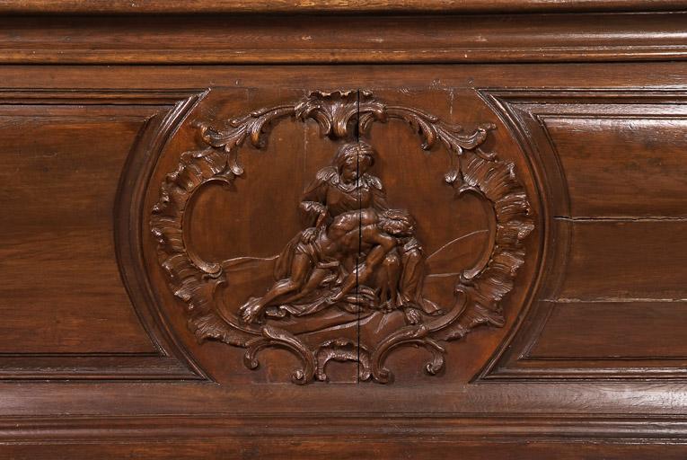 chêne (?) : décor en relief, décor dans la masse ; marbre