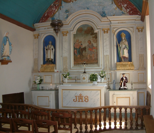 Le maître-autel, ses statues et le tableau de Le Moene sont contemporains de la chapelle édifiée en 1733.