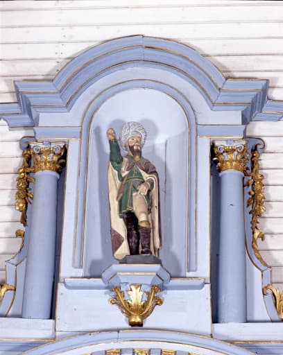 Statue en bois polychrome de saint Roch, associée au retable sud.