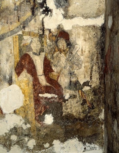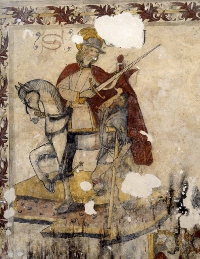 Deux représentations de saint Martin partageant son manteau avec un mendiant estropié ont été peintes : ce saint devait être très apprécié à Felletin pour bénéficier d'une telle dévotion de la part des fidèles. La première peinture sur le mur nord du choeur (cf. notice IM23001476) fut peut-être cachée ultérieurement, d'où cette seconde figuration. Par ailleurs, les images de saint Martin furent très en faveur aux 14e et 15e siècles.