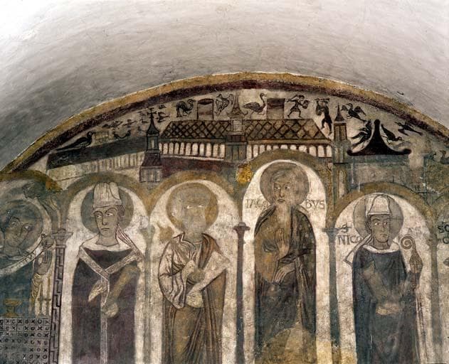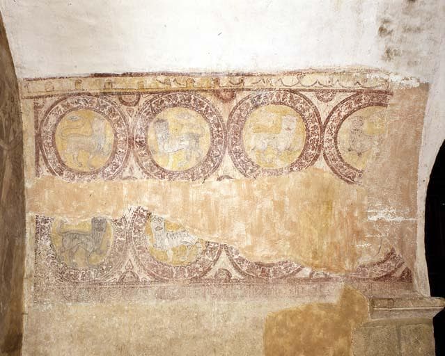 POP | Plateforme ouverte du patrimoinepeintures monumentales du décor des 12e et 13e siècles de la crypte : Messe de saint Gilles, saint Martin de Tours, saint Pierre Apôtre, saint Jacques le Majeur, saint Nicolas de Bari, saint Clément Pape, représentation animalière