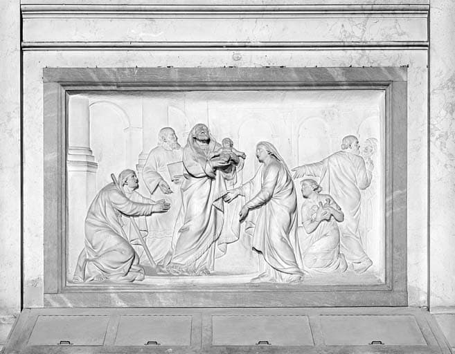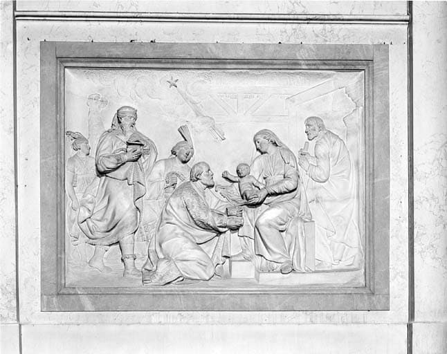 POP | Plateforme ouverte du patrimoine8 bas-reliefs : Adoration des bergers, Adoration des Mages, Présentation au Temple, Déploration, Voeu de Louis XIII, Condamnation de Nestorius au concile d'Ephèse, Immaculée Conception, Signe donné à Achaz