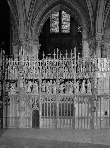 Les groupes sont exécutés entre 1516 et 1716. Le programme iconographique, conçu par Michel Manterne, chanoine administrateur de l'oeuvre Notre-Dame, est d'abord consacré à des épisodes de l'Ancien Testament, par décision capitulaire. Cependant, après la découverte, le 24 mars 1515, d'un manifeste jugé hérétique sur un pilier de l'édifice, il est décidé de consacrer l'intégralité des groupes à l'histoire de la Vierge afin de raffermir le culte marial. La sélection des sujets est réalisée dès l'élaboration du programme et l'on choisit sans doute les épisodes les plus didactiques. Néanmoins, des ajustements et des abandons seront fréquemment nécessaires, généralement liés à la taille des niches, trop exiguës pour loger des scènes de grande envergure, telles la Cène ou la Crucifixion prévues et non réalisées. Le cycle narratif se déroule du sud au nord, il débute par l'Annonce de la naissance de la Vierge à ses parents pour s'achever par son Couronnement aux côtés de la Sainte Trinité. Après la Nativité, la vie du Christ se superpose à celle de la Vierge et cette dernière disparaît des représentations. Elle est à nouveau figurée dans les scènes postérieures à la Crucifixion. La chronologie de l'exécution ne correspond paradoxalement pas à celle du récit puisque les premières scènes réalisées concernent les derniers instants de la Vierge.