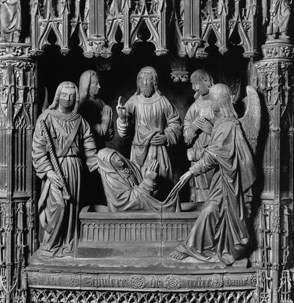 groupe sculpté : Résurrection de la Vierge