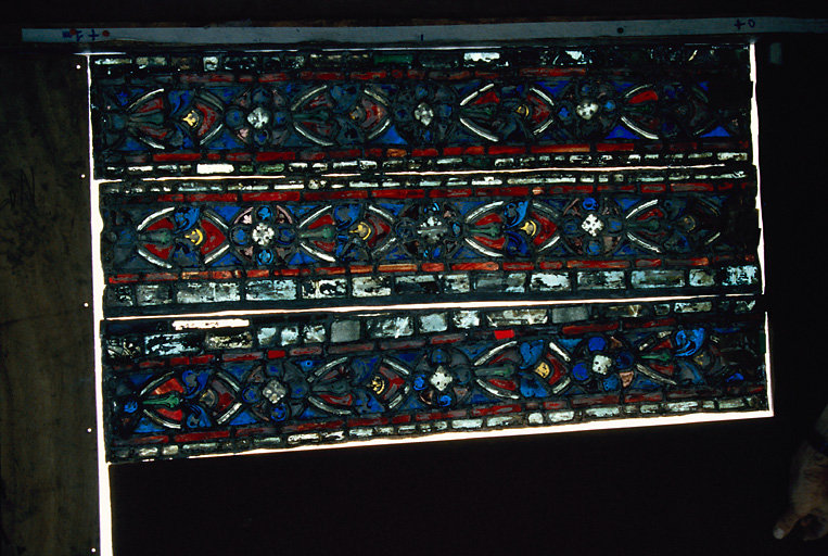 Verrière contemporaine de la cathédrale actuelle reconstruite après l'incendie de 1194. Selon la chronologie traditionnelle, elle peut être datée entre 1210 et 1225.