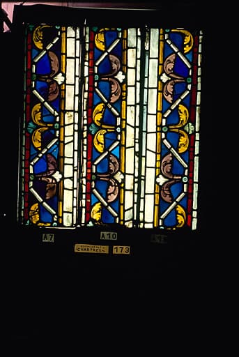 verrière figurée : Trois prophètes, Tentation du Christ, Saint évêque entre deux donateurs (baie 141)
