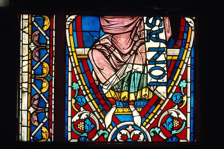 POP | Plateforme ouverte du patrimoineverrière figurée : Trois prophètes, Tentation du Christ, Saint évêque entre deux donateurs (baie 141)