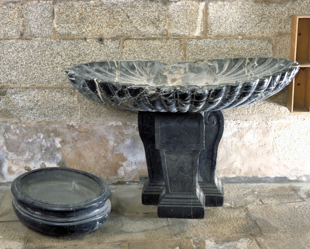Le bénitier pourrait dater de la fin du 18e ou du début du 19e siècle, tout comme le vestige d'un petit bénitier oval posé par terre.