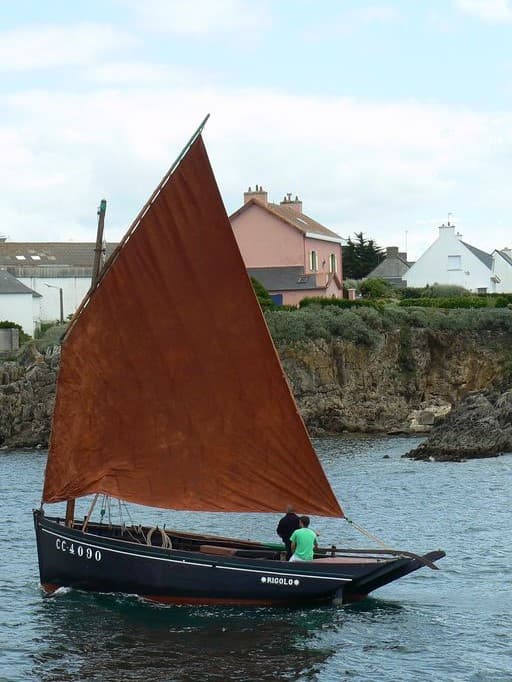 Rigolo est la reconstruction à l´identique d´un canot à misaine-tape-cul, à l´origine armé à la pêche au maquereau et à la sardine. Le nom de misainier vient du type de gréement utilisé : ils étaient en général armé d´une simple voile au tiers appelée misaine. Cette voile à bordure libre est appelée au tiers car le point de drisse est situé aux environs du tiers de la vergue sur laquelle elle est transfilée. Ce type de gréement se voulait simple : un bateau, un mât, une drisse, une voile, une écoute. Il permet notamment de régler la tension de la voile sur la vergue ainsi que celle du guindant (bordure avant). En effet, afin d´éviter la déformation de la voile, la tension n´est pas directement subite par la voile mais par une passeresse sur laquelle est transfilée le guindant. Il est alors aisé d´en régler la tension, augmentée avec la force du vent (ces réglages ont été adoptés sur les gréements modernes). Le gréement diffère des chaloupes sardinières (bateau à cul rond), dont le gréement est composé d´une misaine et d´un taillevent de taille supérieure.. . Le Rigolo a la particularité de posséder deux voiles supplémentaires : un tape-cul et un foc. L´ajout de ces voiles provient d´une évolution du canot à misaine et notamment de l´augmentation de sa taille. Leur ajout fut préférable à l´augmentation de la surface de la misaine pour conserver au bateau sa dimension humaine.. . Le tape-cul est une voile au tiers gréée sur un mât situé au niveau du grand banc et de surface inférieure à celle de la misaine. Cette voile est à la fois appropriée pour la navigation au près, puisqu´elle permet un gain de puissance et de cap considérable, et aux allures portantes. On est loin ici de sa définition classique : cette déformation provient d´une utilisation locale du terme ou est liée à ce type de bateau comme il est courant avec les voiliers traditionnels. Quant au foc, il est envoyé sur un bout dehors. Malgré sa taille relativement faible, il apporte également un gain de puissance considérable.. . La taille de Rigolo est imposante pour un canot à misaine, mais il possède les caractéristiques propres à ce type de bateau de travail : une carène plate donnant sa stabilité au bateau, un tirant d´eau modéré, et une forte quête d´étambot (partie arrière d´un navire, anciennement appelée poupe) lui procurant une très bonne manœuvrabilité.. . La coque est construite en chêne. Elle est renforcée par une serre et trois bancs rigidifiant véritablement la structure du bateau. Le grand banc est proche du milieu du bateau et le banc de pompe au tiers arrière. Les plus petits misainiers ne possédaient que le grand banc et le banc de pompe.. . Les misainiers sont généralement des bateaux dit creux (non pontés) mais certains d´entre eux sont pontés jusqu´au grand banc (c´est le cas de Rigolo), ou jusqu´au banc de pompe. Le Rigolo est un bateau caractéristique des bateaux utilisés par les pêcheurs des côtes de Bretagne-Sud au cours de la première moitié du 20e siècle. Il est l´un des deux types de bateaux, avec les chaloupes sardinières, qu´utilisaient les pêcheurs de Doëlan.