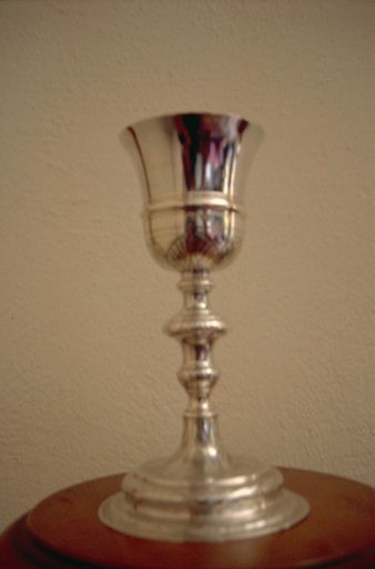 Calice réalisé par un atelier d'orfèvre romain au cours de la deuxième moitié du 18e siècle, comme l'indique le poinçon d'origine étrangère insculpé sur l'oeuvre.
