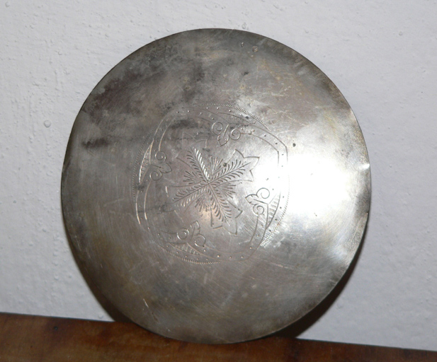 Poinçon de maître : J, une étoile, P (Jean-Marie Pernolet), et poinçon garantie et titre argent départements depuis 1838 insculpés sur le bord de la patène.