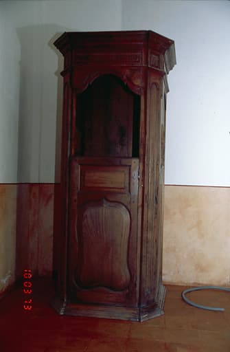 Confessionnal ou plafond, couronné d'une corniche moulurée. Guichets à battants pivotants.