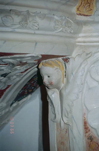 schiste : enduit ; stuc : moulé, modelé, peint, polychrome, décor rapporté, décor en relief