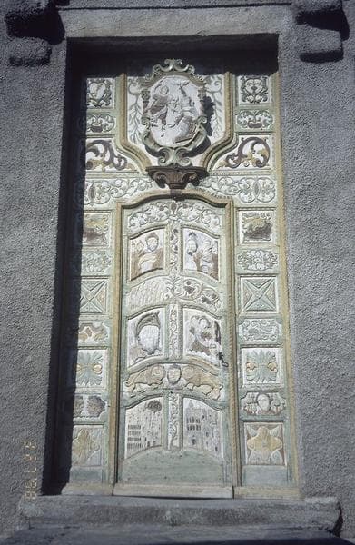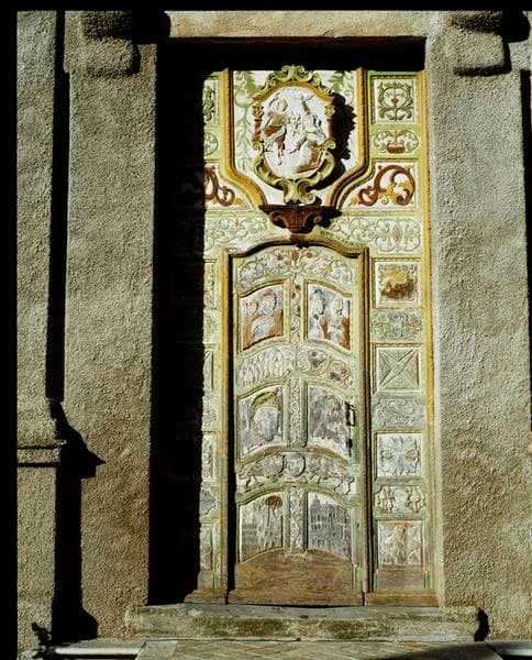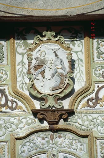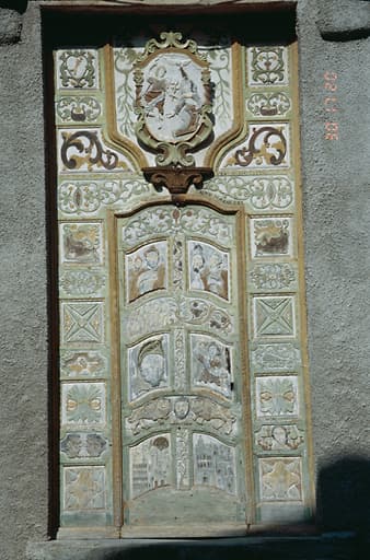 châtaignier : taillé, chantourné, mouluré, peint, polychrome, décor dans la masse, décor rapporté