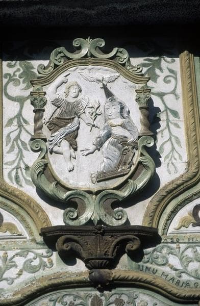 Annonciation, Salomé, chef de saint Jean-Baptiste, soldats, têtes d'hommes et de femmes, lions, paysages, édifices religieux et civils, épis de blés, pampres, ornement végétal, ornement géométrique.