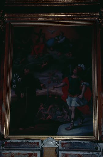 POP | Plateforme ouverte du patrimoinetableau d'autel : Intercession de saint Antoine de Padoue et de saint Michel en faveur des Ames du Purgatoire auprès de la Sainte Trinité