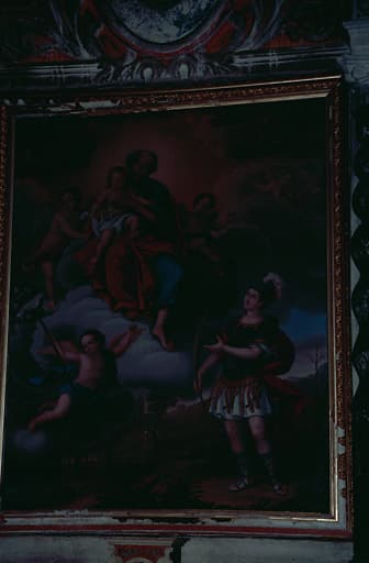Tableau daté de 1884 réalisé par le peintre Joseph Giordani, de la Porta, comme l'indique l'inscription peinte au bas de la toile. Figure dans l'inventaire des biens dépendant de la fabrique paroissiale dressé le 24 mars 1906.