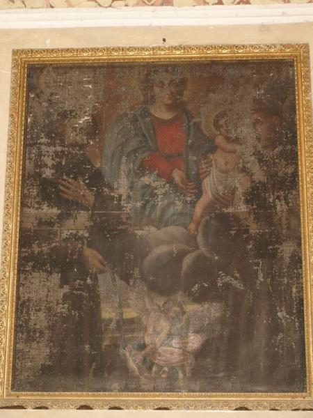 tableau d'autel : saint François d'Assise et saint Antoine de Padoue intercédant auprès de la Vierge pour les âmes du Purgatoire