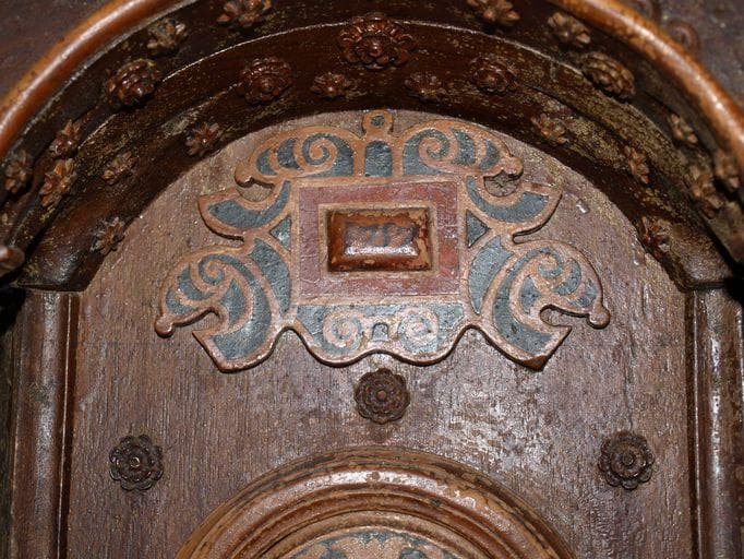 châtaignier, noyer, buis : taillé, mouluré, découpé, tourné, impastation (noir) ; décor rapporté, décor en relief, vernis