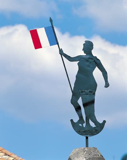 Obélisque de plan octogonal supportant un polyèdre en pierre avec girouette en fer découpé