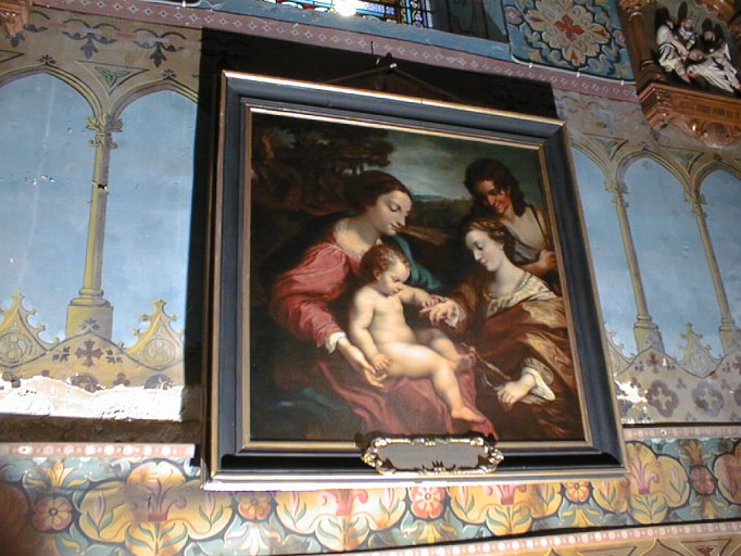 Cette oeuvre est une copie du Mariage mystique de sainte Catherine d'Alexandrie avec saint Sébastien, tableau du peintre italien Corrège (Musée du Louvre, Inv. : 41). Elle a été exécutée par mademoiselle Hélène Przepiorska, principalement connue comme copiste. Ce tableau a été commandé à l'artiste en 1877, et mis en dépôt cette même année. Le tableau a été restauré en 1990 par Patrick Merle, Galerie Akademia, 30 rue des Couteliers à Toulouse, pour la somme de 3261,50 francs, selon le devis du 10 novembre 1989 (pièce présentée par la mairie).