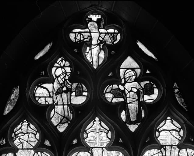verre transparent : peint, jaune d'argent, grisaille sur verre, sanguine sur verre