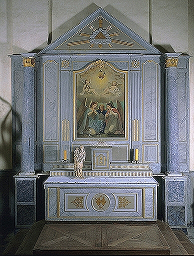 Panneaux peints du devant d'autel refait ? ; le retable paraît avoir été amputé.