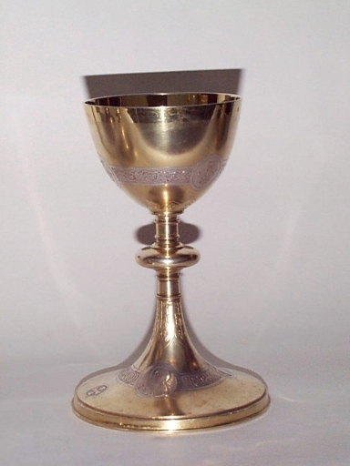 Calice réalisé dans l'atelier des orfèvres parisiens Berger et Nesme entre 1889 (date d'insculpation de leur poinçon) et 1924 (date de biffage de leur poinçon).